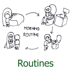 Example: The camp counselor suggested that we have a morning routine of first making our bed, then using the bathroom, then brushing our teeth before getting dressed.